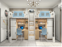 公寓書桌床: 1、公寓床架: (1)雙人位公寓床,尺寸長4500mm,寬900mm,高2100mm。 (2)床立柱:采用正六邊形無縫鋼管,直徑65mm(±...點擊詳情
